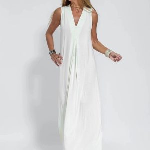 Don’t miss out on the opportunity to enhance your style and achieve a captivating look. Simplify your fashion experience with Lighteme Elegant Solid Color Sleeveless Maxi Dress and embrace the dream of effortless elegance.