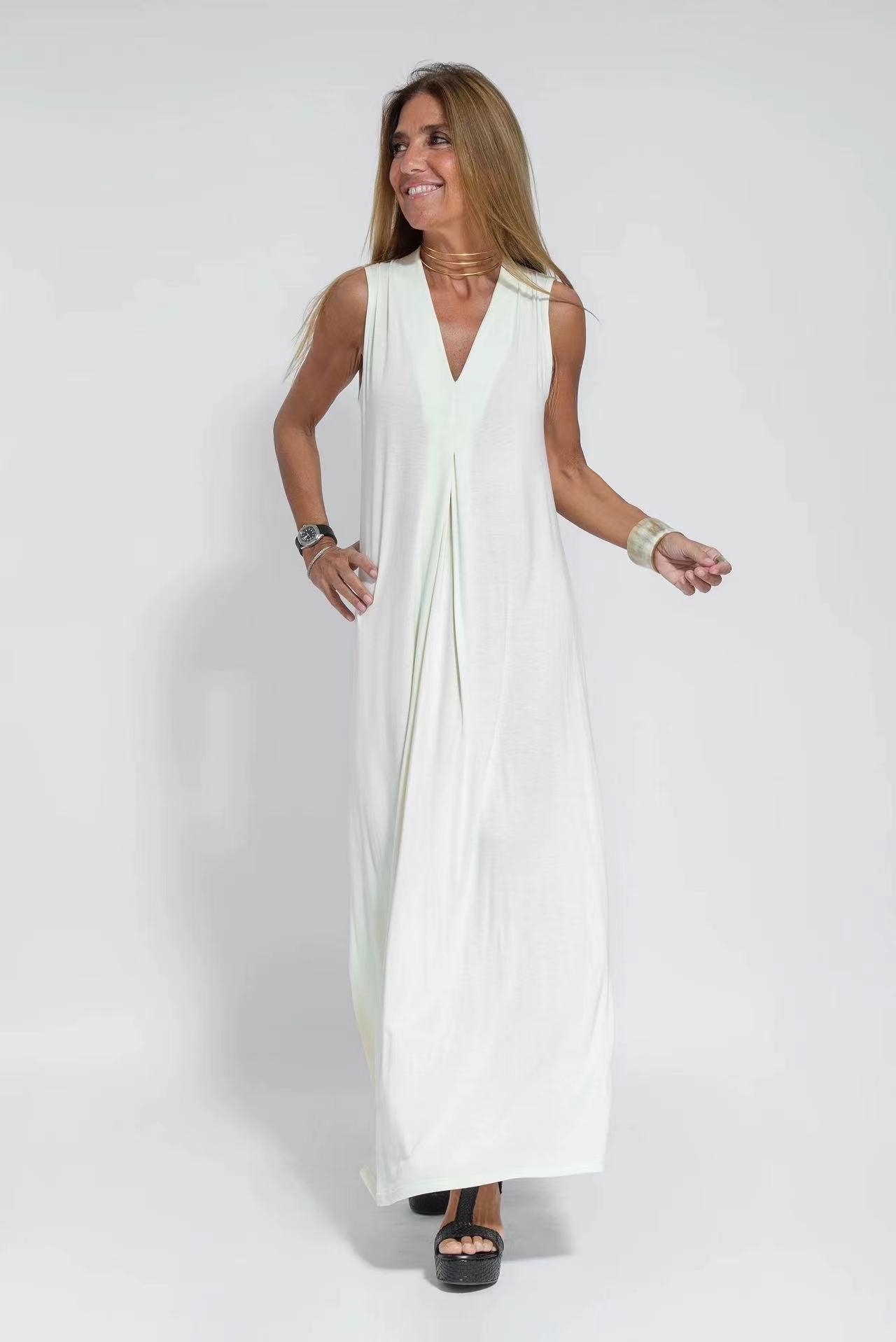 Effortlessly Radiate Elegance with Lighteme Elegant Solid Color Sleeveless Maxi Dress!