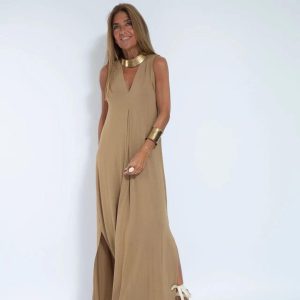 Introducing Lighteme Elegant Solid Color Sleeveless Maxi Dress. the ultimate tool for fashion-forward individuals. Its exquisite design and attention to detail make it a must-have for those seeking to make a fashion statement.