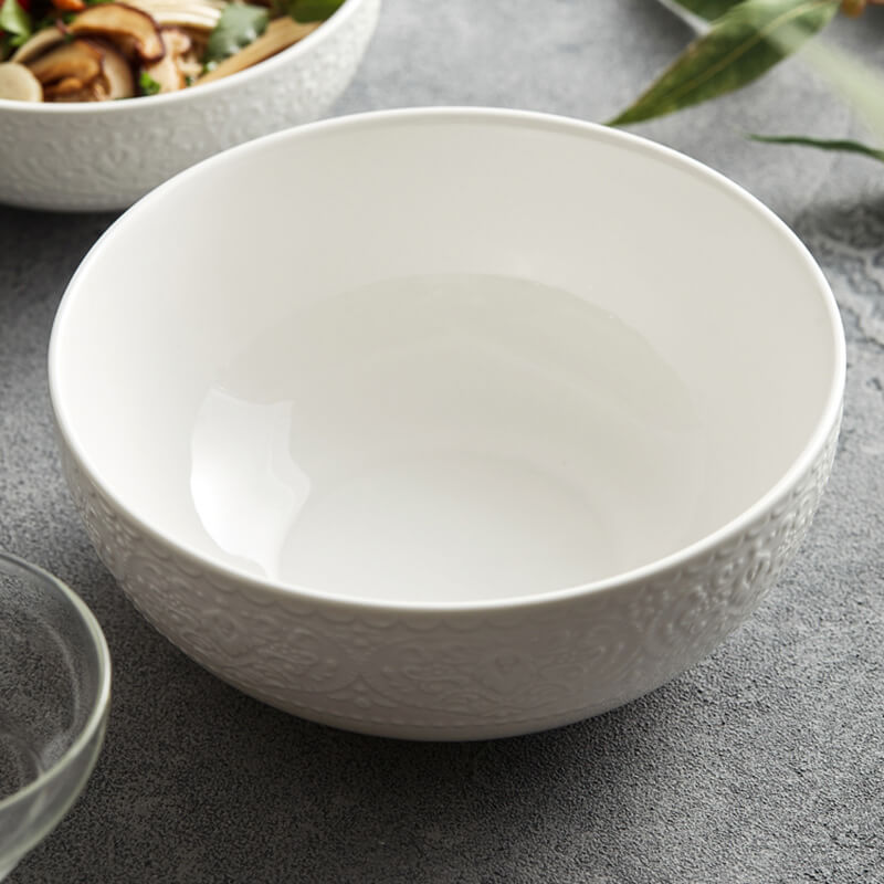 The Lighteme Embossed Ceramic Bowl (Item No: 202306BO04) is a harmonious blend of artistic craftsmanship and everyday functionality. Crafted from premium ceramic. this bowl features a delicate embossed design paired with a smooth. glossy glaze. creating a striking contrast that elevates both casual meals and formal gatherings. Its pure white hue and versatile shape make it a timeless addition to any table.