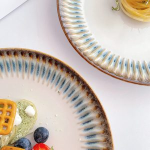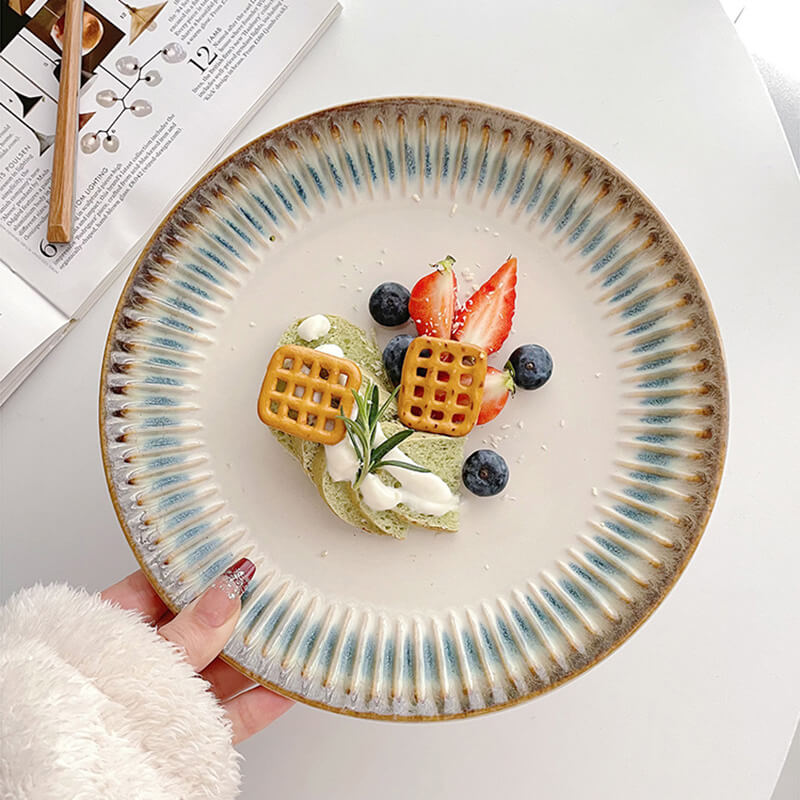 Lighteme Embossed Vertical Grain Ceramic Plate: Timeless Vintage Elegance for Your Table