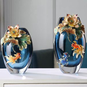 - Aesthetic Appeal: The fish play lotus leaf design of this glass vase is its most distinctive feature. It brings a sense of tranquility and charm to the room. The enamel color combined with the intricate design creates a visually appealing and unique display. Whether placed on a wine cabinet in the living room or as an ornament in the entrance hall. it stands out and adds a touch of elegance to the decor. It can complement various decor styles. from traditional to modern. making it a versatile addition to your home.