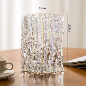 The Lighteme Extreme Frozen Glacier Vase is a remarkable decor piece that combines elegance with a touch of luxury. Made of glass and available in various colors such as transparent. green. purple. blue. amber. and gray. this vase comes in a size of 15*21cm and is packaged as a single piece. It serves as a beautiful hydroponic flower vase and a decorative ornament for your home.