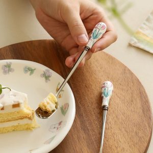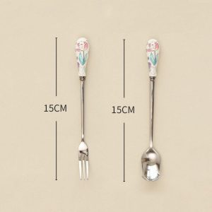 The Lighteme Floral Ceramic Handled Dessert Spoon & Fork set combines artistic design with premium functionality. featuring intricate floral patterns on ceramic handles paired with food-grade stainless steel utensils. Ideal for elevating dessert and coffee moments. this set adds a touch of timeless elegance to both casual and formal occasions.