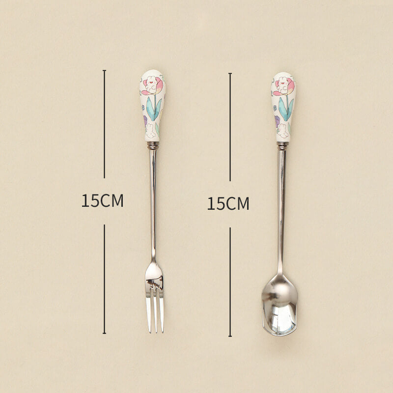 Lighteme Floral Ceramic Handled Dessert Spoon & Fork