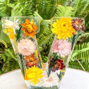 Natural Beauty Preserved – Delicate dried flowers encapsulated in resin preserve their vibrant colors and textures. creating a stunning visual effect that enhances the ambiance of any room.