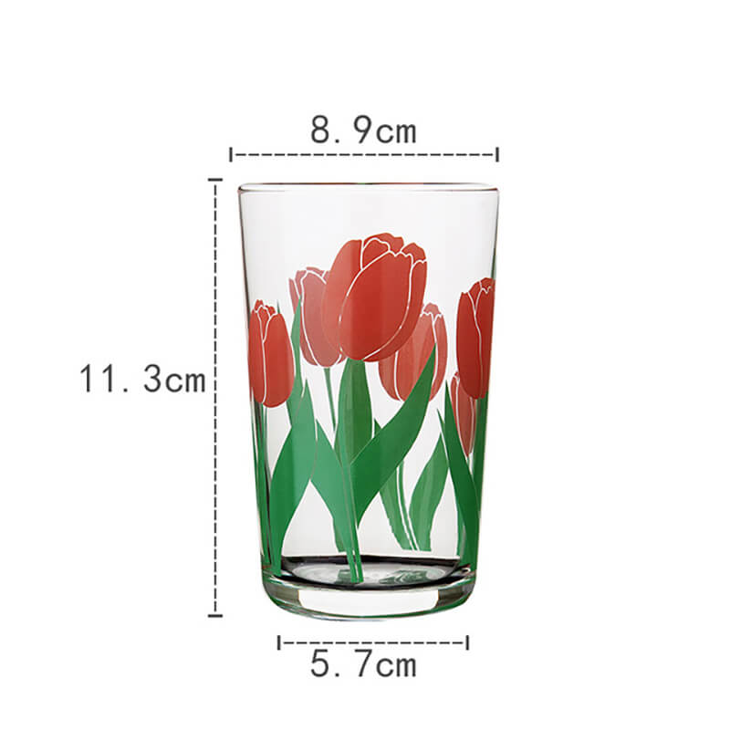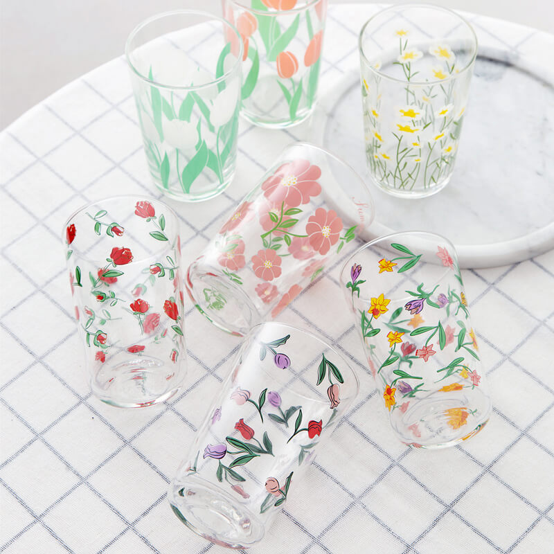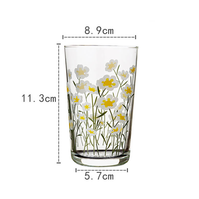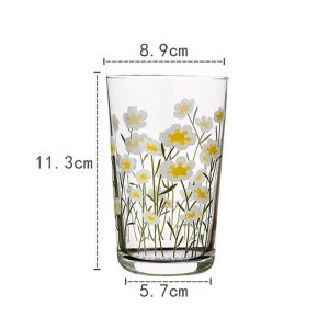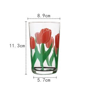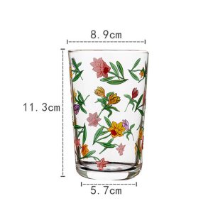 - Transparent Showcase: The lead-free glass allows the floral print to stand out while showcasing the color of your beverage. whether it’s a rich coffee. a vibrant juice. or a clear herbal tea. The contrast between the print and the liquid creates a visually striking effect.