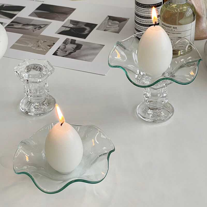 - Visual Appeal: The transparency of the glass gives the candle holder a sleek and sophisticated look. It allows the light of the candle to create a beautiful and inviting ambiance in the room. The glass can also reflect and refract the light. adding an extra layer of visual interest. Whether you use a scented candle or a plain one. the glass candle holder will enhance the overall aesthetic of the candle and the surrounding space.