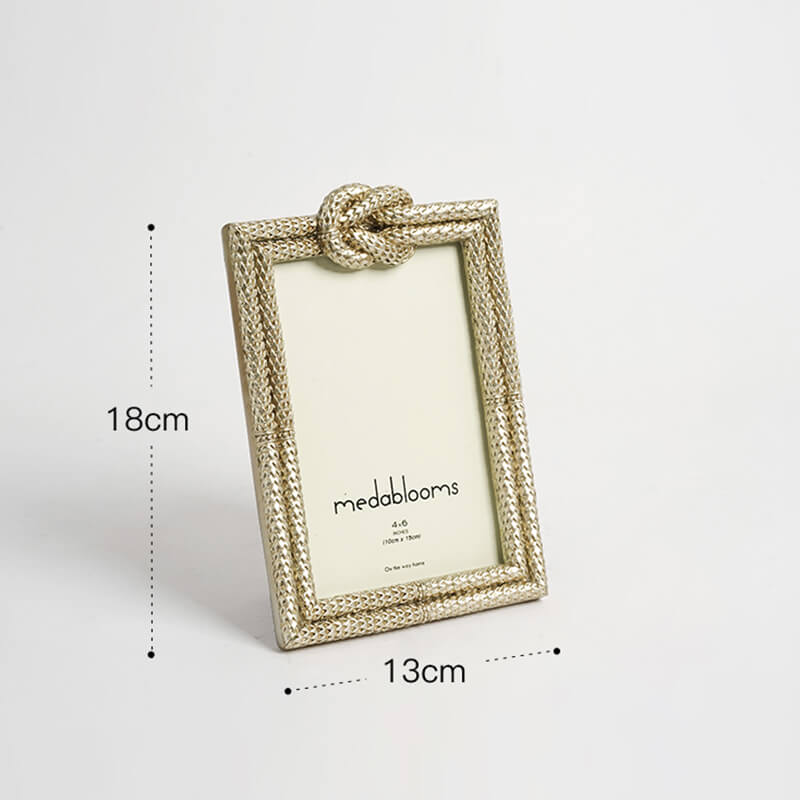 - Visual Interest: The delicate texture of the knot design adds depth and dimension to the frame. The way the resin is molded to create the knot gives it a lifelike and tactile appearance. This texture not only makes the frame visually engaging but also encourages closer inspection. as the details of the knot can be appreciated up close. The golden knot serves as a focal point. drawing the eye and enhancing the overall aesthetic of the photo it holds.