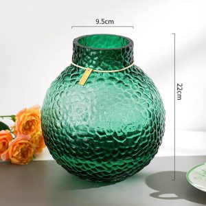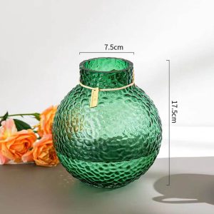 In conclusion. the Lighteme Green Ice Pattern Ball Vase is a wonderful combination of style. durability. and decorative functionality. Its green ice pattern design. glass material. and suitability for hydroponic arrangements and dining table decoration make it a great choice for anyone looking to enhance the decor of their home and add a touch of modern elegance.