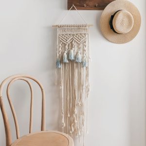 - Gentle Cleaning: To keep the wall hanging looking its best. it’s important to follow the care instructions. Since it should not be washed with water. using a dust remover regularly is the recommended method of cleaning. This helps to remove dust and debris from the woven surface and the tassels. maintaining its appearance and preventing any damage that could be caused by more aggressive cleaning methods.