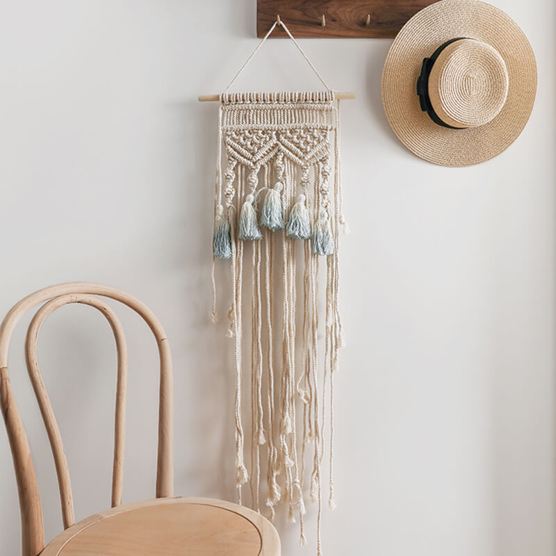 - Dynamic Movement: The tassels attached to the wall hanging add a playful and dynamic element. As they sway gently with the movement of air. they bring the wall hanging to life. creating a sense of fluidity and liveliness. The tassels are made from the same soft cotton material as the main body of the wall hanging. ensuring a cohesive look. Their presence also adds a touch of bohemian flair. making the piece feel more relaxed and inviting.