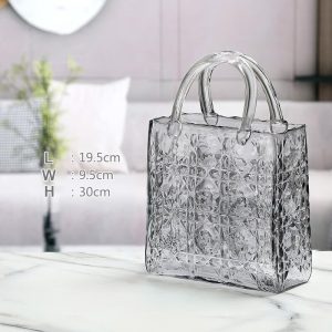 - Enhancing the Space: This handbag glass vase can significantly enhance the ambiance of the space. Its unique design and glass material create a sense of elegance and luxury. It can be placed in different rooms. such as the living room. bedroom. or dining room. to add a touch of sophistication. The vase’s ability to hold flowers or other decorative elements makes it a valuable decor item that can transform the look of a room.
