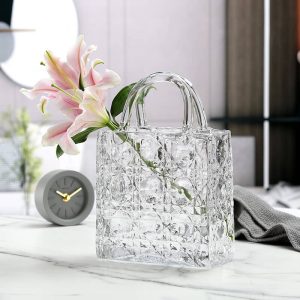 - Aesthetic Appeal: The handbag design of this glass vase is its most distinctive feature. It brings a sense of modern luxury and uniqueness to the room. The shape mimics a handbag. adding a touch of fashion and style. Whether placed on a desktop. coffee table. or dining table. the vase draws the eye and adds a touch of elegance to the decor. It can complement various decor styles. from modern to contemporary. making it a versatile addition to your home.
