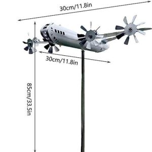 The magical airplane wind spinner has a multicolored. rust-free brushed finish and a sturdy stake at the base. which withstands all weather conditions. making it robust and durable for windy days.