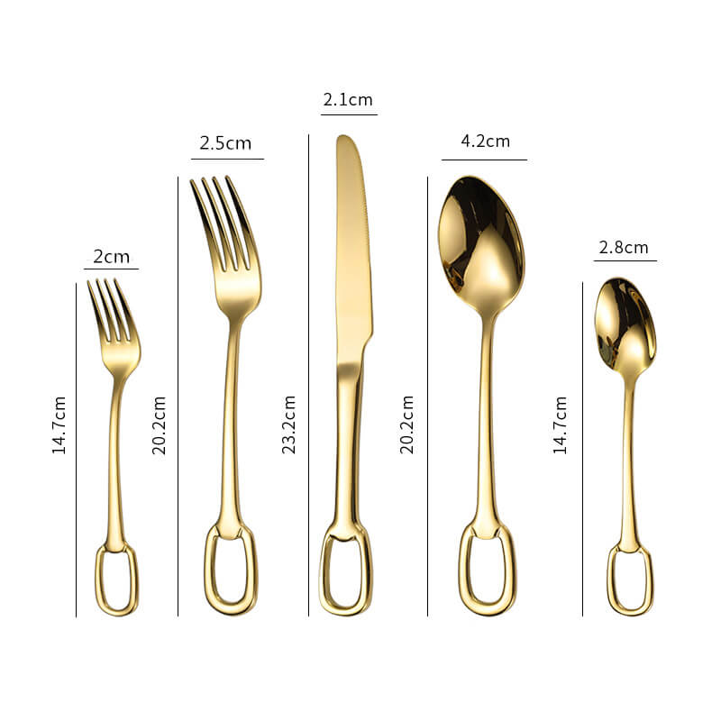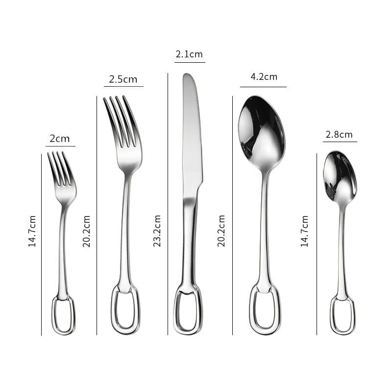 | Set Includes | 5 pieces: 1 main spoon. 1 main fork. 1 main knife. 1 dessert spoon. 1 dessert fork |