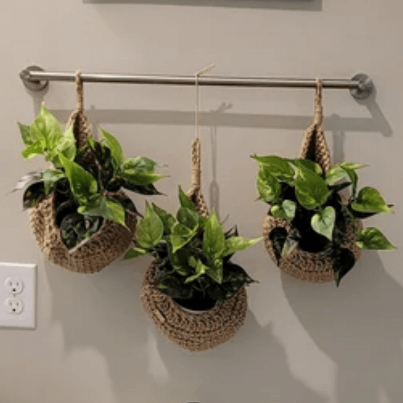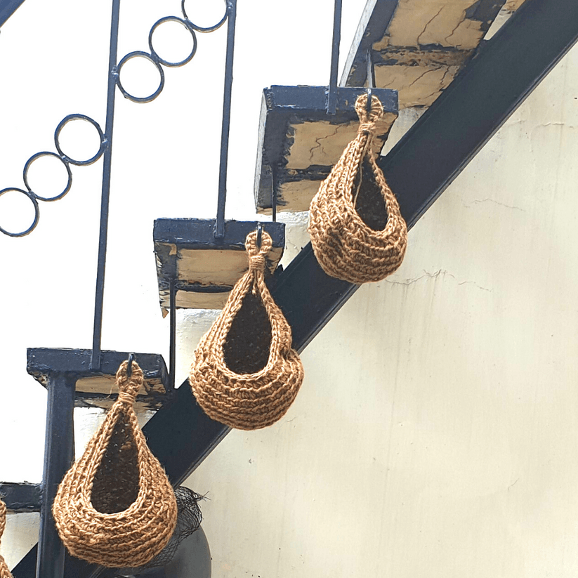 ✔️ Handcrafted Crochet: Each planter is meticulously handcrafted using the traditional art of crochet. resulting in a one-of-a-kind piece that exudes authenticity and craftsmanship. Despite the strenuous task of crocheting jute. we embrace this practice as a gift to both you and the environment.