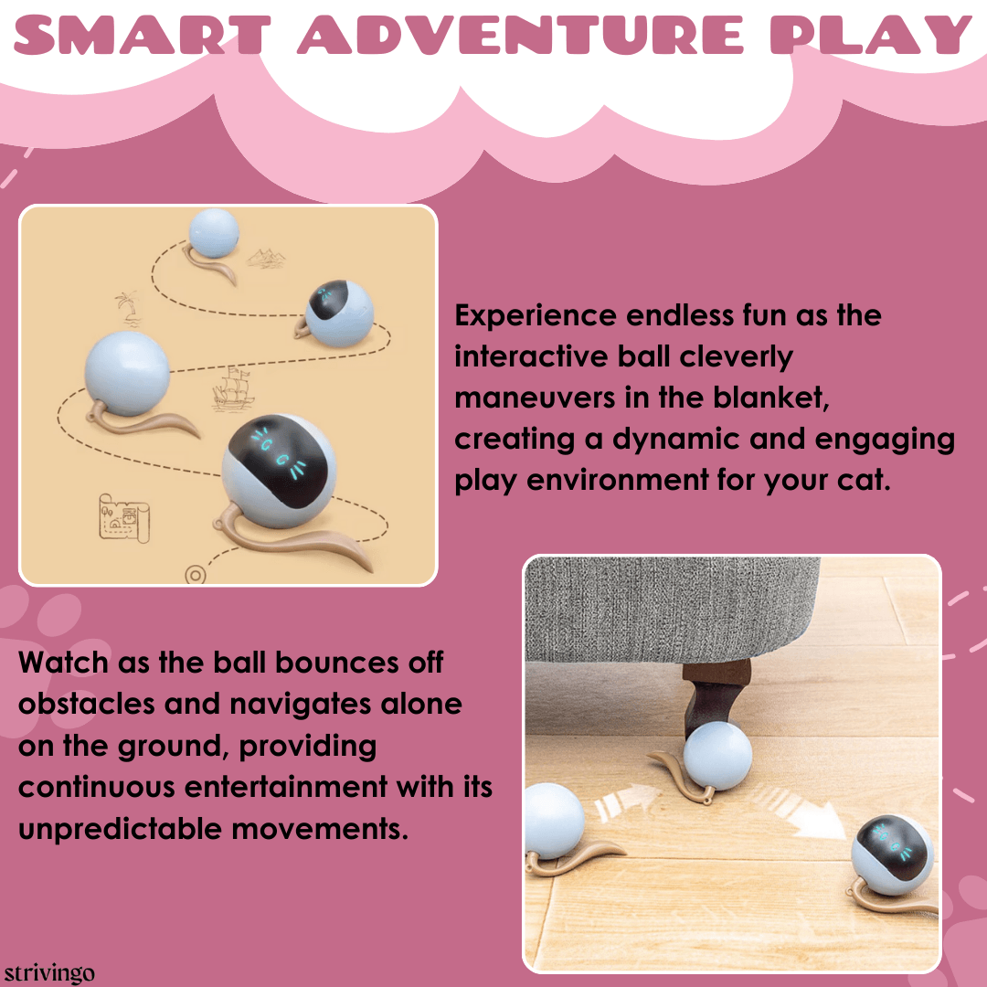 ✔ SMART ADVENTURE PLAY: Experience endless fun as the interactive ball cleverly maneuvers in the blanket. creating a dynamic and engaging play environment for your cat. Watch as the ball bounces off obstacles and navigates alone on the ground. providing continuous entertainment with its unpredictable movements.