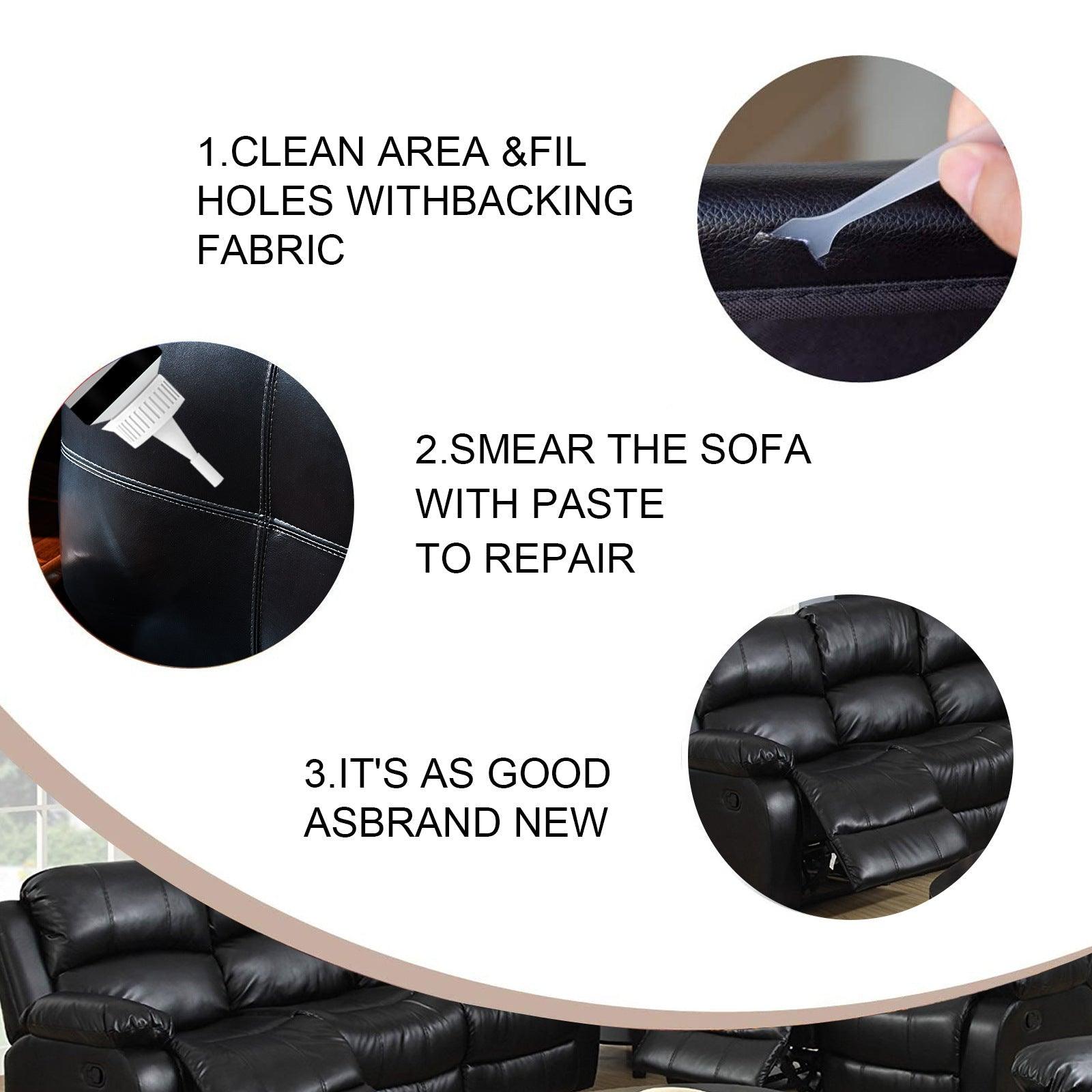 ✓ Effortlessly repairs holes. tears and scratches in all leather. faux leather and vinyl colors.