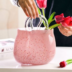 The Lighteme Light Luxury Glass Handbag Vase is a remarkable piece that combines high-end creativity with functionality. Made from glass and featuring a handbag design. this vase is a luxurious addition to any home living room. With styles like the strawberry hand basket and strawberry bag. and crafted through manual blowing. it serves as both a decorative item and a hydroponic vase.