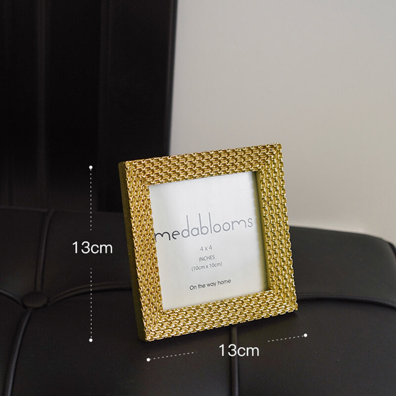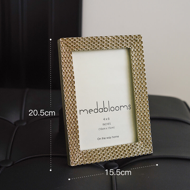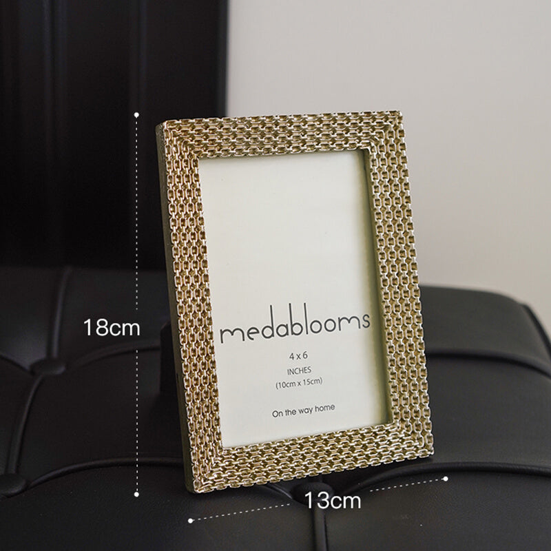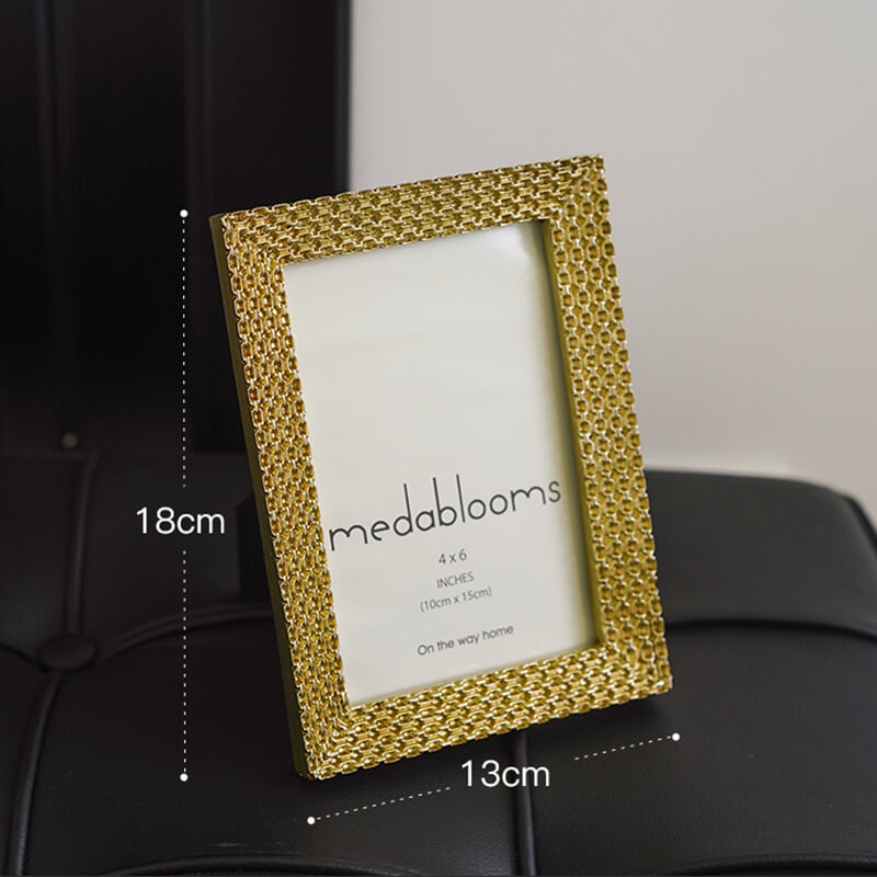 - Visual Interest: The combination of the smooth gold surface and the intricate chain texture creates a striking contrast. The texture adds depth and dimension to the frame. making it more visually engaging. The way the chain appears to wind around the frame gives it a dynamic and fluid feel. enhancing its overall aesthetic appeal. Whether displayed on a mantelpiece. a bedside table. or a gallery wall. the frame is sure to stand out and draw attention.