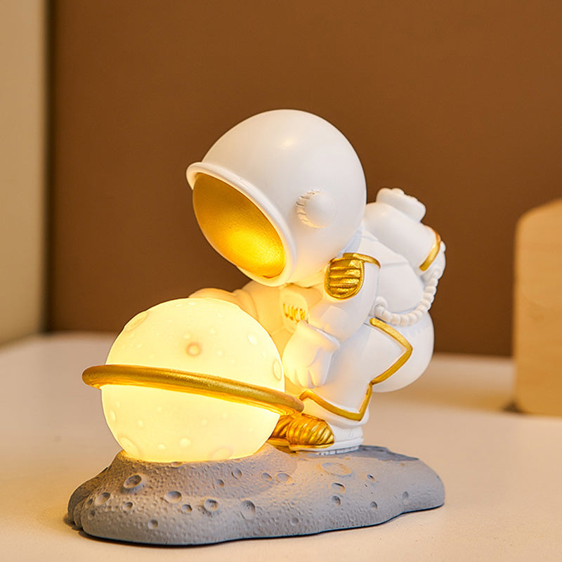 - Playful yet Sophisticated: The lamp features a stylized astronaut figure in a classic space suit. complete with a helmet. backpack. and a whimsical pose that exudes curiosity and adventure. Crafted from smooth PVC and soft silicone. the astronaut’s body offers a tactile. squishy texture (silicone parts) for a fun. comforting feel.