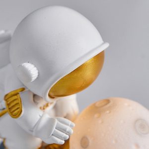 - Modern Color Palette: Available in sleek white. metallic silver. or midnight blue. the astronaut’s design complements modern. minimalist. or space-themed decor. The helmet’s visor often includes a subtle reflective surface. adding depth to the design.