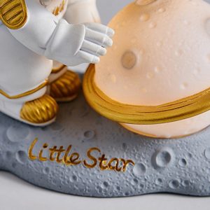 - Gentle Night Light Glow: Press the button on the astronaut’s base to toggle between two brightness levels: