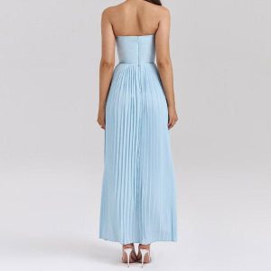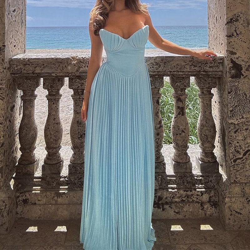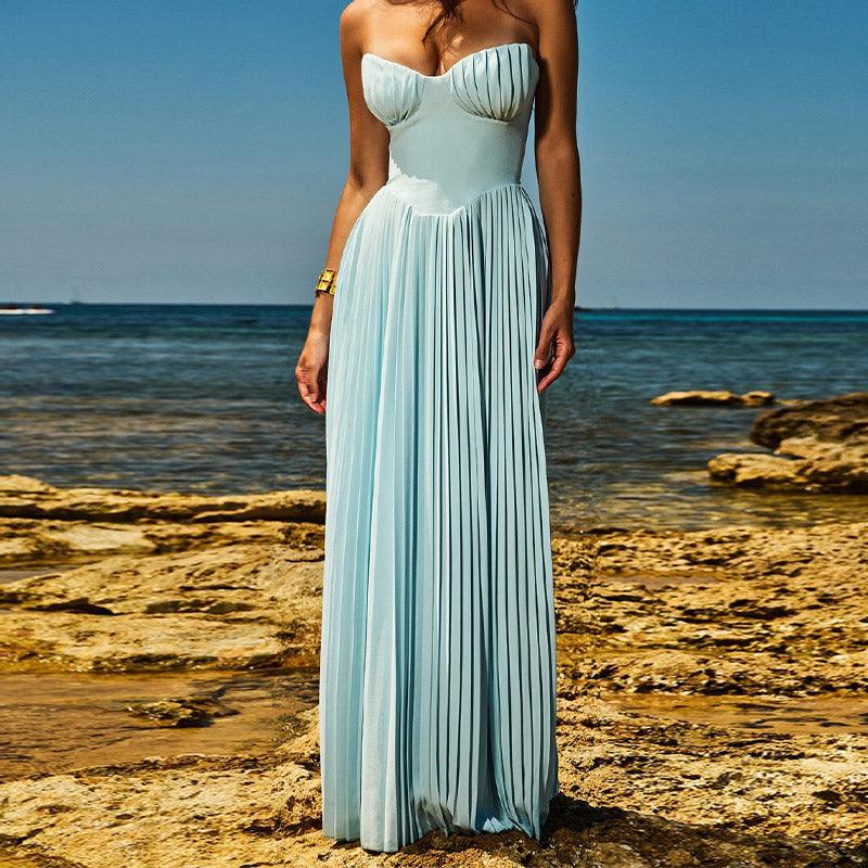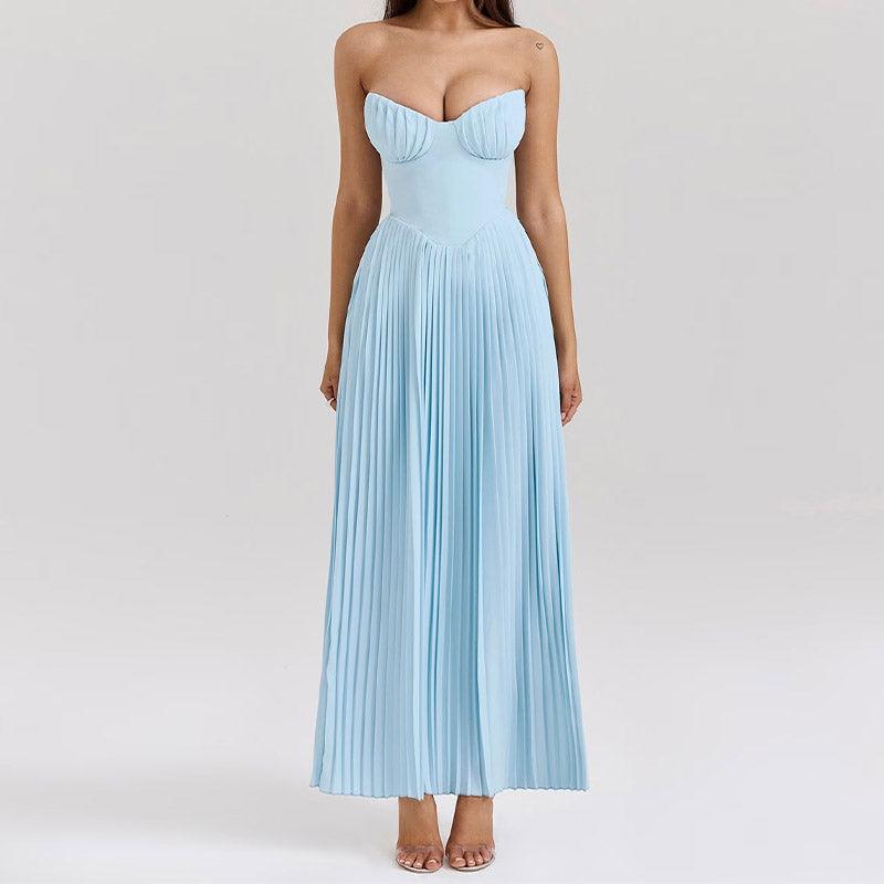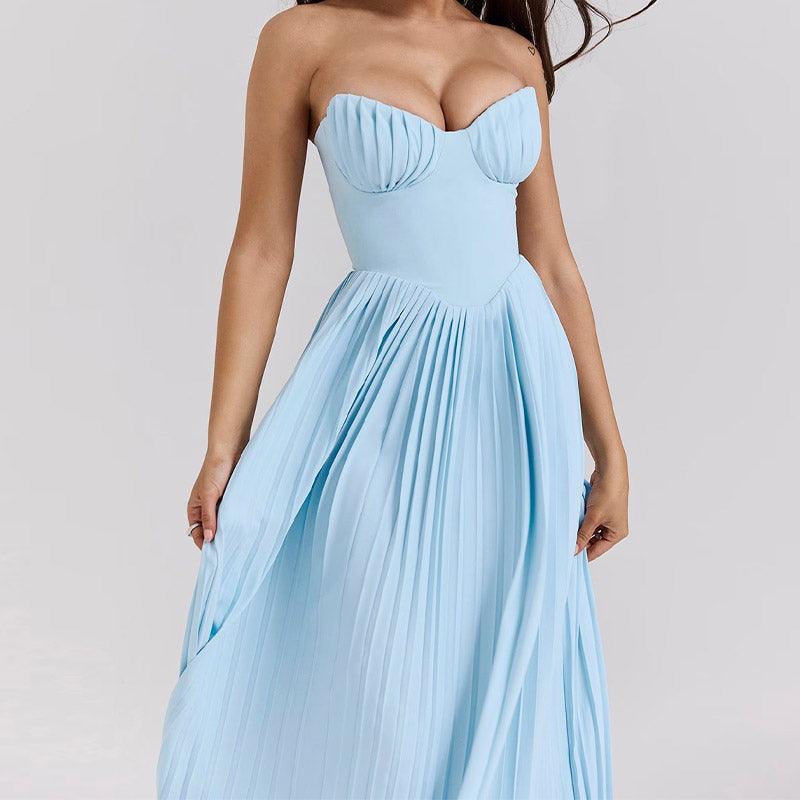 Elevate your style with the Lighteme Luxury Off-Shoulder Blue Corset Maxi Dress. designed to accentuate your figure while offering unmatched comfort.