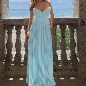 ✔️ FLATTERING FIT FOR ANY OCCASION – The high waist and pleated hem create a graceful A-line silhouette that’s perfect for weddings. parties. or any event where you want to shine.