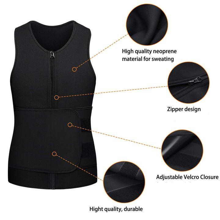 - UNIQUE DESIGN: Our model is easy to put on and take off since it has a zipper! One of the key calorie-burning enhancing features that the vest has is the internal thermal active layer. which stimulates perspiration and significantly speeds-up your metabolism. The Velcro Belly Wrap adds additional compression & heat to more quickly flatten your abdomen.