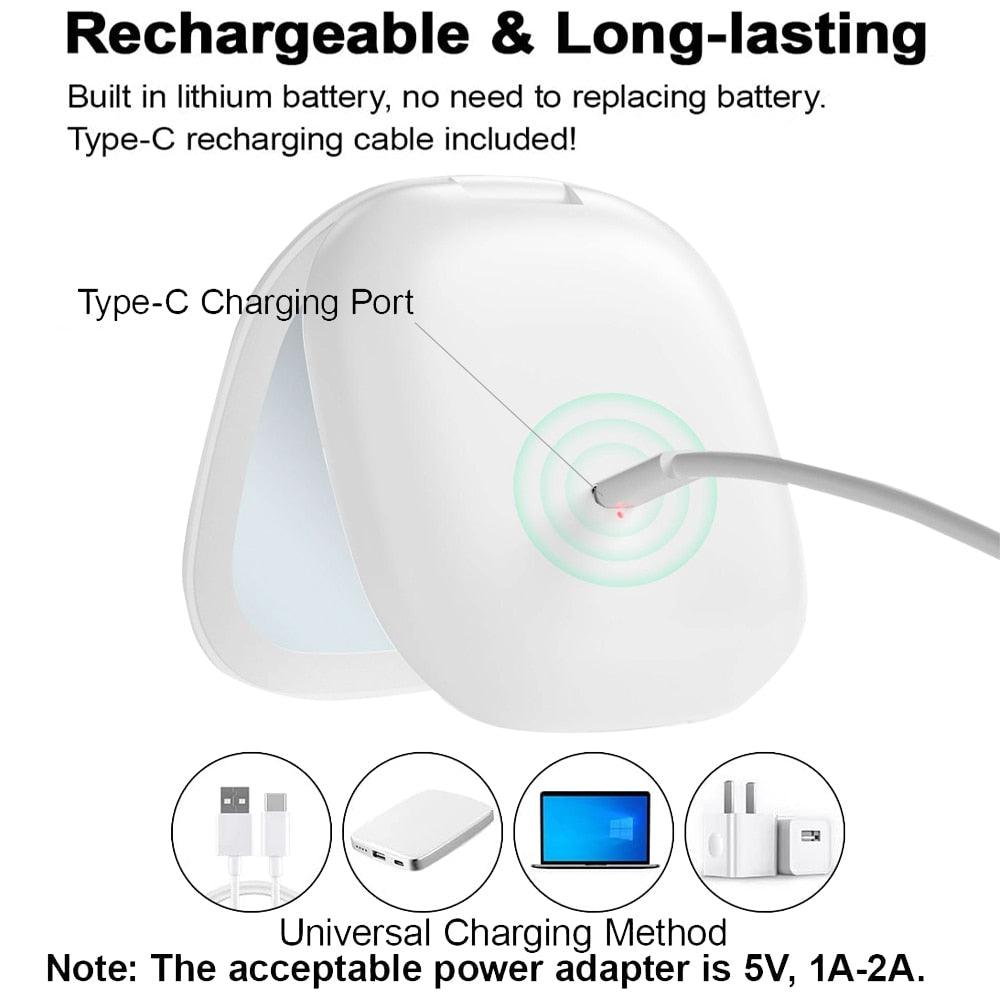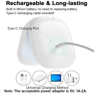 ✔ Rechargeable Convenience: Say goodbye to batteries! Lighteme comes with a built-in USB Type-C rechargeable battery. providing up to 5 hours of usage even at maximum brightness. USB charging cable included!