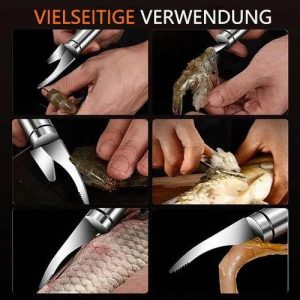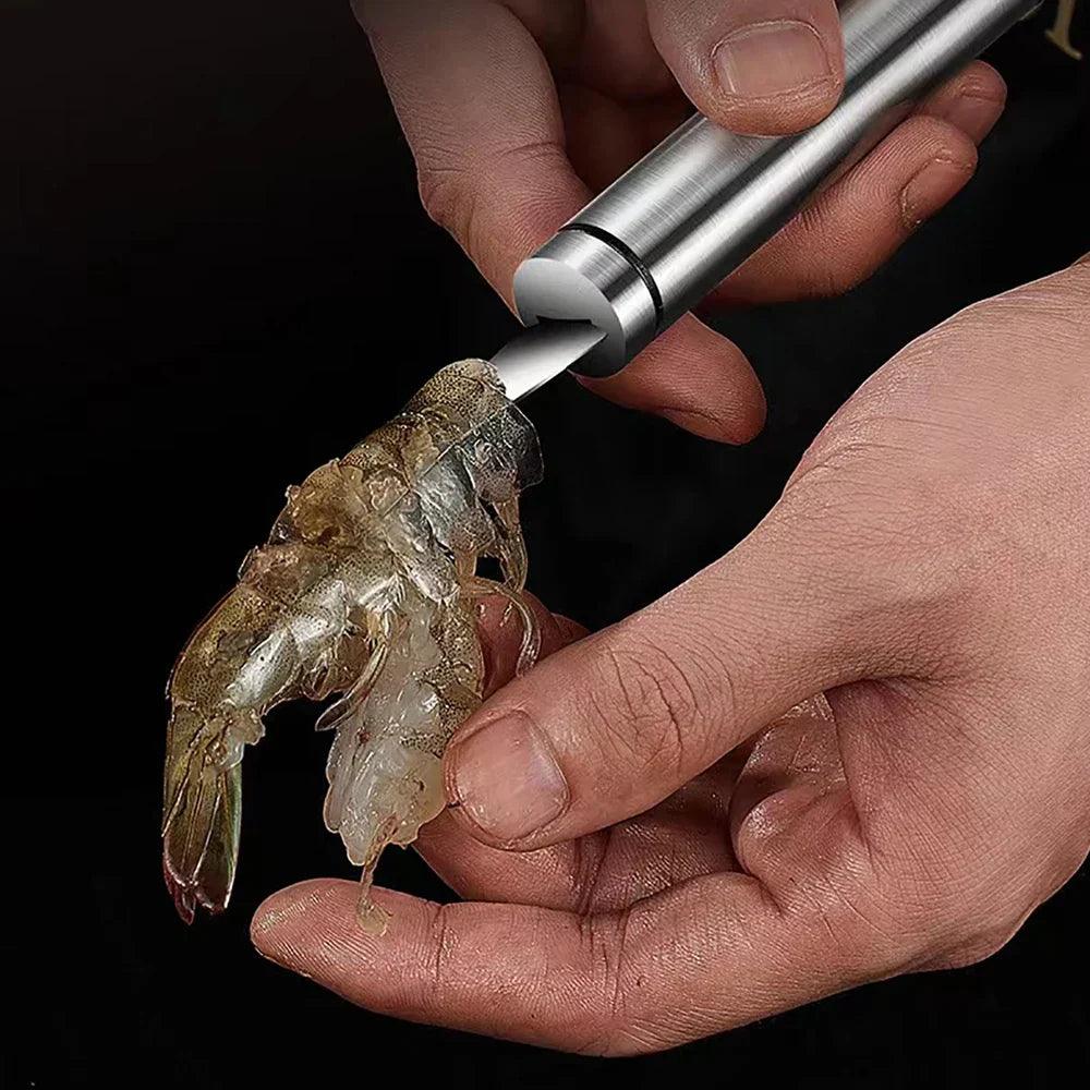 ✅ Versatile Design: Our Multifunctional Stainless Steel Shrimp Peeler combines several tools in one. perfect for peeling shrimp. cutting shrimp lines. scraping. and removing fish scales.