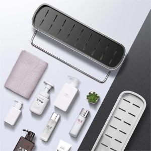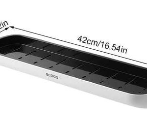 The thoughtfully designed drain holes ensure efficient drainage. keeping your items dry and tidy. Made from durable plastic and stainless steel. our shelf is built to last. adding convenience and style to your daily routine.