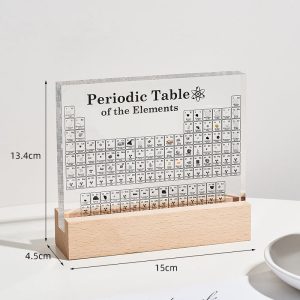 - At 13.44.515cm. it’s perfectly sized for desks. shelves. or bedside tables. making a statement without overwhelming small spaces. The vertical design ensures the periodic table is easily readable. while the slim profile saves valuable surface area.