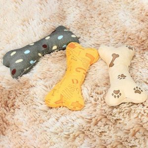Lighteme Pet Dog Squeak Toy Cartoon Bone Shaped Plush Chew Toy (3 colors)
