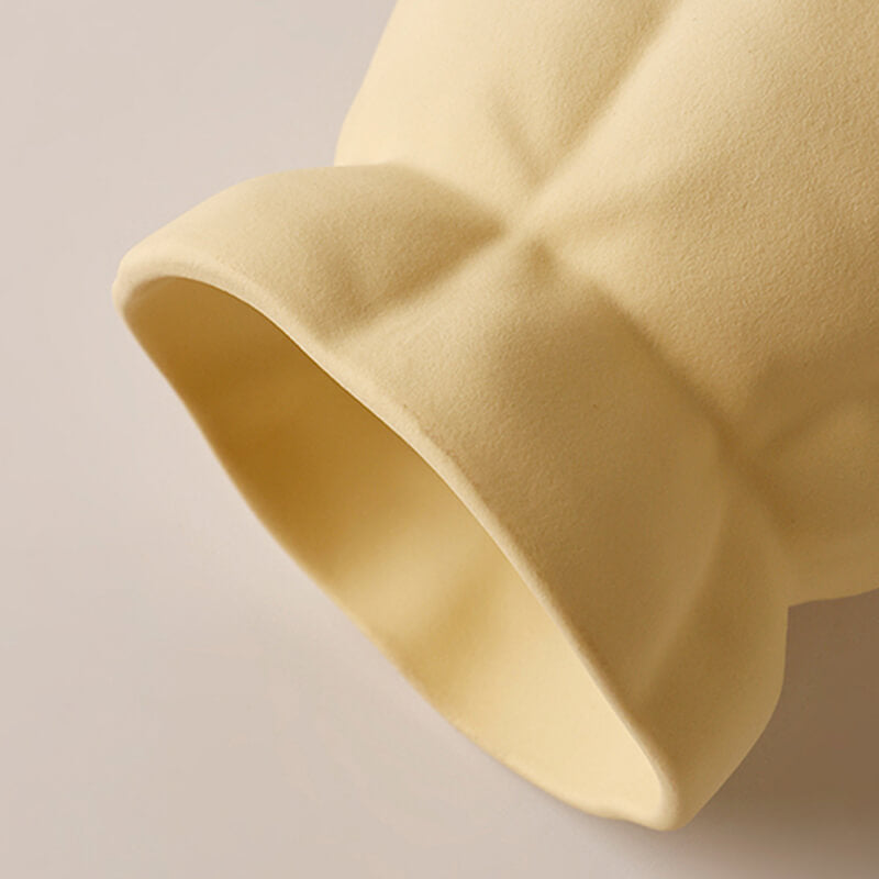 Embrace minimalist sophistication with this pleated grid ceramic vase. where one flower. one object. one world philosophy meets understated artistry. Its textured design enriches spaces with hidden elegance. transforming simple floral displays into captivating focal points for modern interiors.