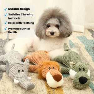 Delight your small dog with this engaging Plush Cartoon Puppy Chew Toy. designed to provide hours of entertainment and promote healthy chewing habits. Crafted from durable materials. this toy is perfect for active chewers and features a built-in squeaker to keep your pet engaged.