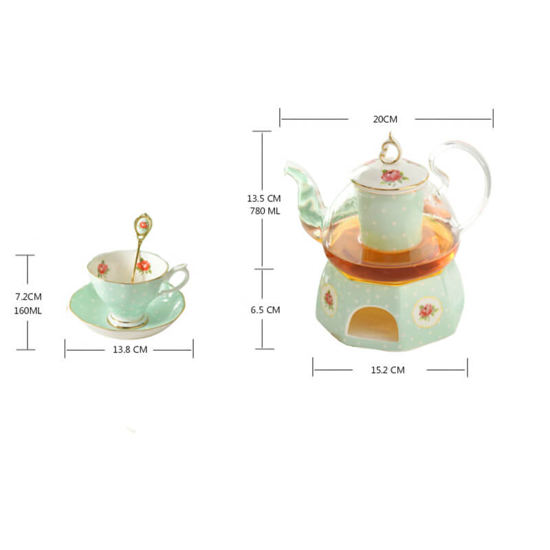 2-Piece Set: Cups ×2 + Teapot ×1 + Saucers ×2 + Candle Holder ×1 (Perfect for intimate tea dates).