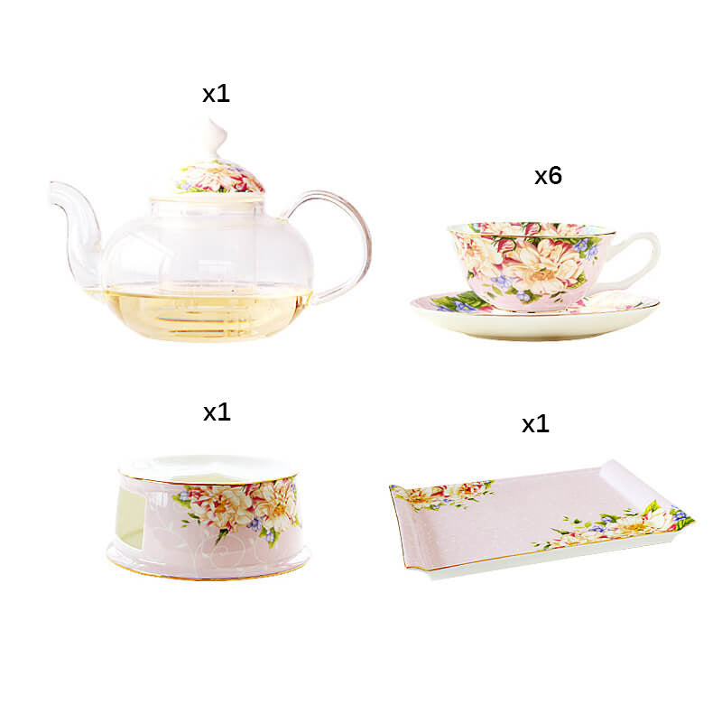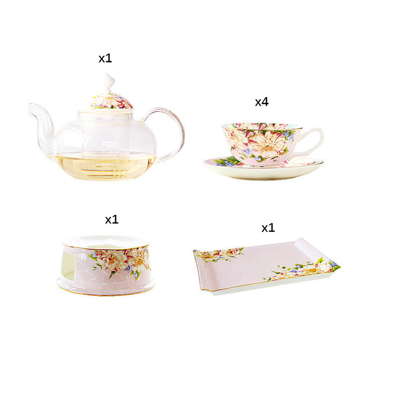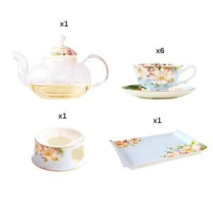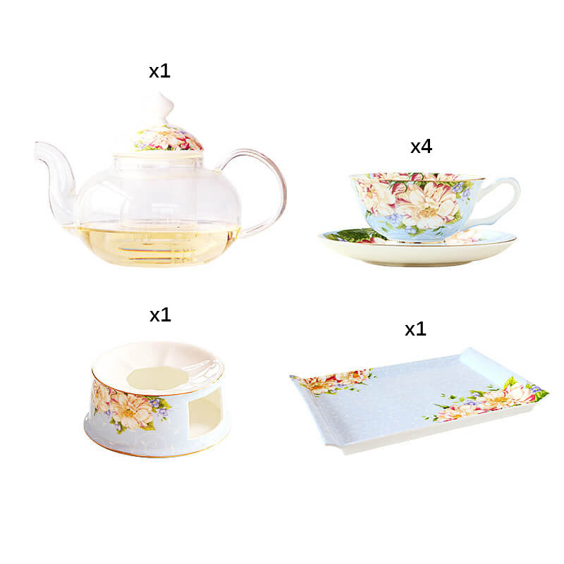 Complete Serving Set: Includes teapot. cups. saucers. tray. and a candle holder for cozy ambiance.