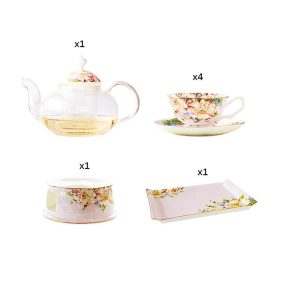 Indulge in timeless sophistication with this bone china teapot set. featuring delicate floral motifs that bring natural elegance to your tea rituals. Crafted for durability and refined aesthetics. it’s perfect for intimate gatherings or serene solo moments. blending tradition with modern tabletop charm.