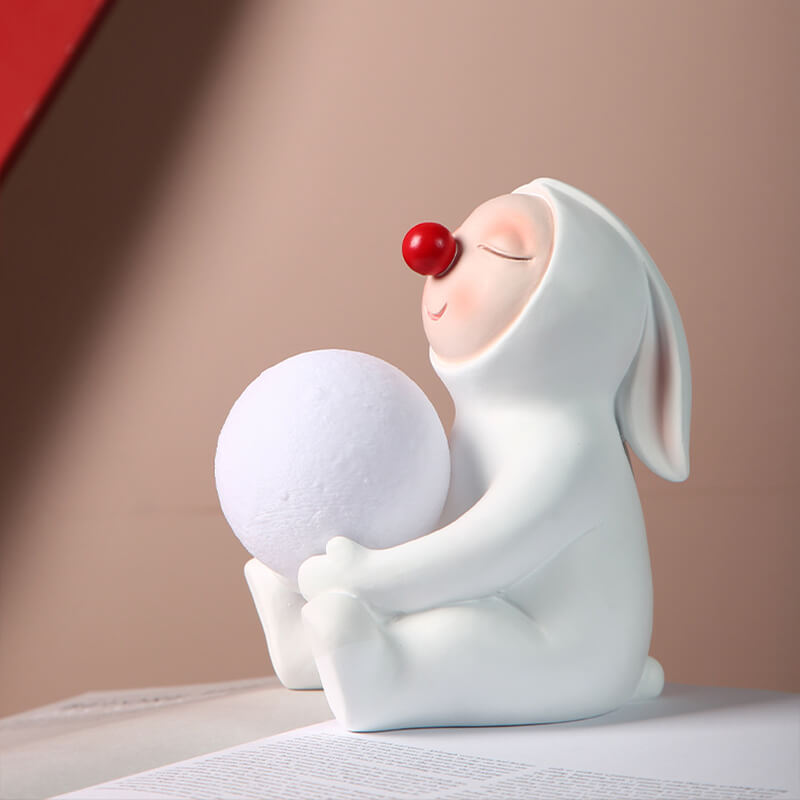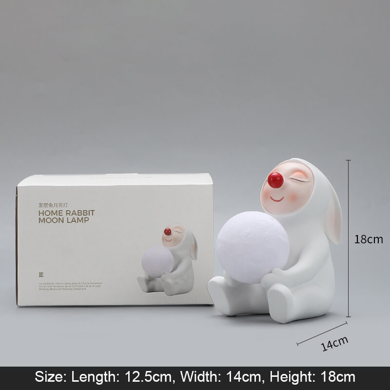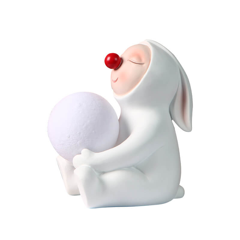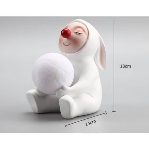 - Charming Details: The lamp features a seated rabbit with floppy ears. a fluffy tail. and a sweet. inviting expression. The white synthetic resin body is adorned with subtle textures. such as fur-like patterns and a whimsical outfit (e.g.. a bowtie or dress). adding depth and character.