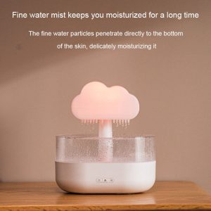 - Sleek White Silhouette: The humidifier features a smooth. white ABS body shaped like a stylized cloud. with a clear water tank that mimics falling raindrops. The minimalist design blends seamlessly with modern. bohemian. or Scandinavian decor.