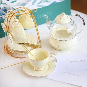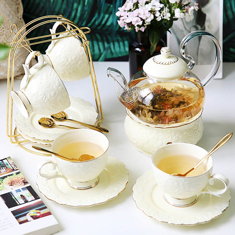 - Complete Tea Experience: The set includes all essentials for a proper tea service: matching cups and saucers. spoons. a cup holder for organization. and a candle holder for creating a warm. ambient atmosphere. The saucers are designed to catch drips. while the cups are sized for both black tea and herbal blends.