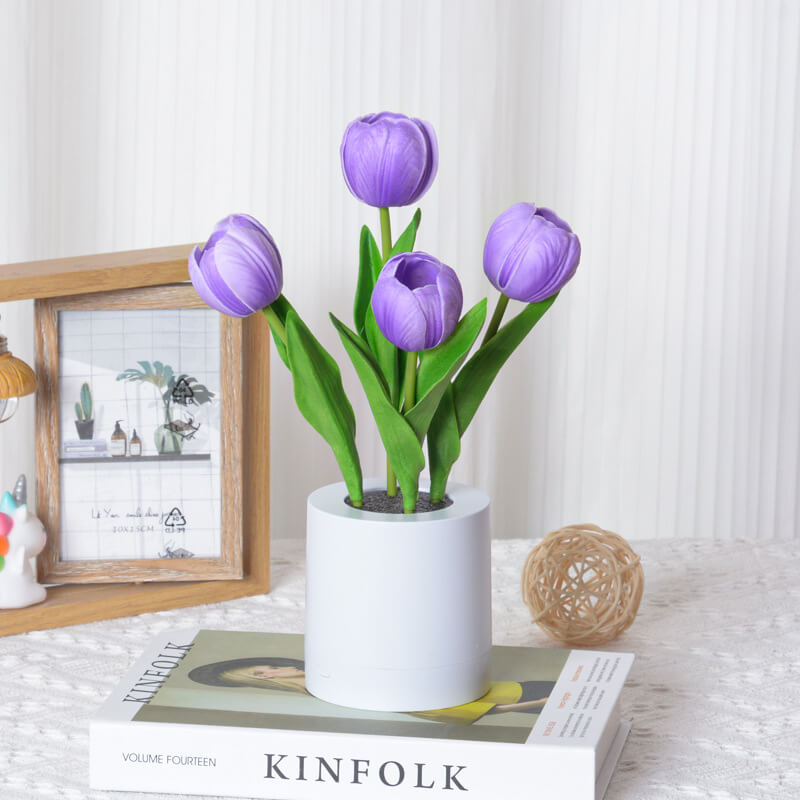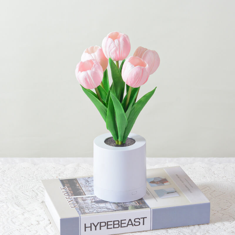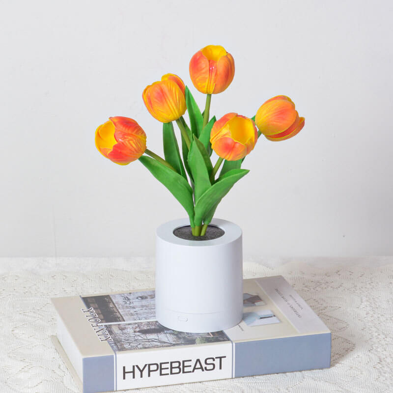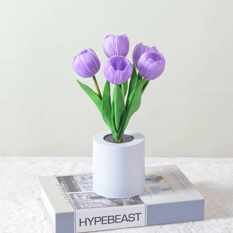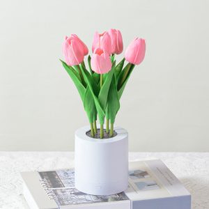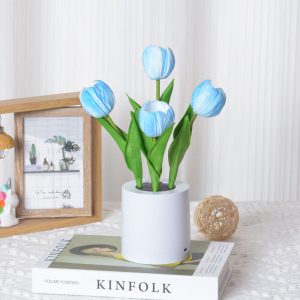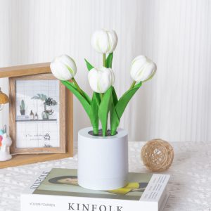 - 1.2W Warm White LED: The built-in LED emits a gentle. flicker-free light (≈3000K warm white) that emanates from the tulip’s center. casting a soft glow through the PU petals. The light is ideal for creating a calming atmosphere. whether as a bedside night light or a decorative accent during evening gatherings.