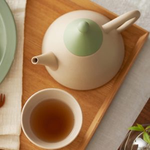 | Design | Teapot: Pointed hat-shaped lid with a minimalist spout Cups: Smooth. rounded design in Morandi colors (e.g.. dusty pink. sage green. misty blue) |