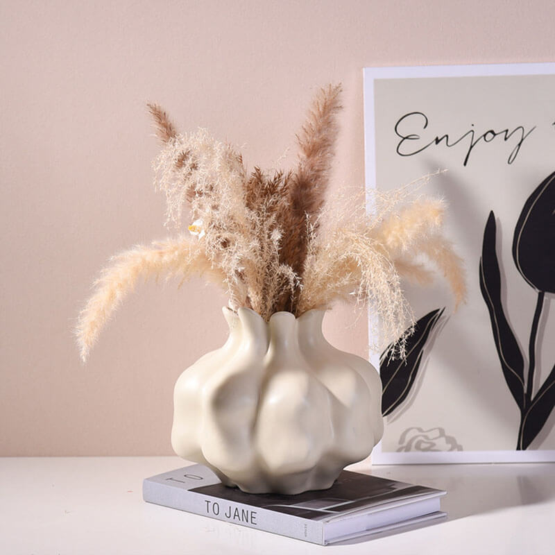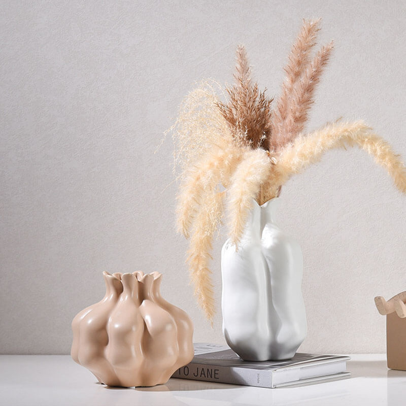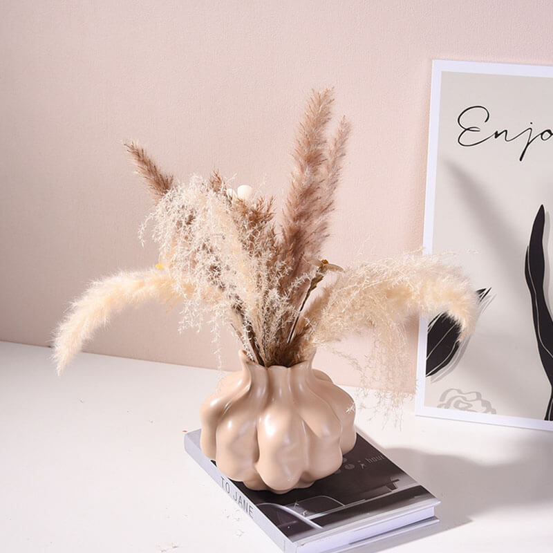 - Flower Arrangement: This ceramic vase is ideal for arranging dried flowers. The solid color and the wabi-sabi style make it a great backdrop for showcasing the beauty of dried blooms. It can hold a variety of dried flower arrangements. from simple and minimalist to more elaborate and creative designs. The vase can be used to add a touch of nature and a sense of style to the home. making it a functional and decorative piece.