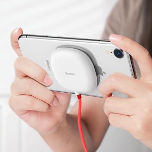 Thanks to the spider-like suction cup. the charger will adhere strongly to the back of your phone. The cup won’t fall off or move when you are moving. The charger. made of plastic and silicone is small. lightweight and perfect for carrying with you.
