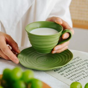 Lighteme Spiral Pattern Ceramic Cup and Saucer – Where every swirl tells a story of refined indulgence.