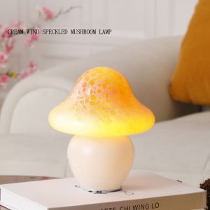 - Whimsical Mushroom Silhouette: The lamp features a plump mushroom cap with subtle spotted patterns. hand-blown from translucent glass to create a soft. diffused glow. The stem is designed with gentle curves. mimicking the organic shape of wild mushrooms.